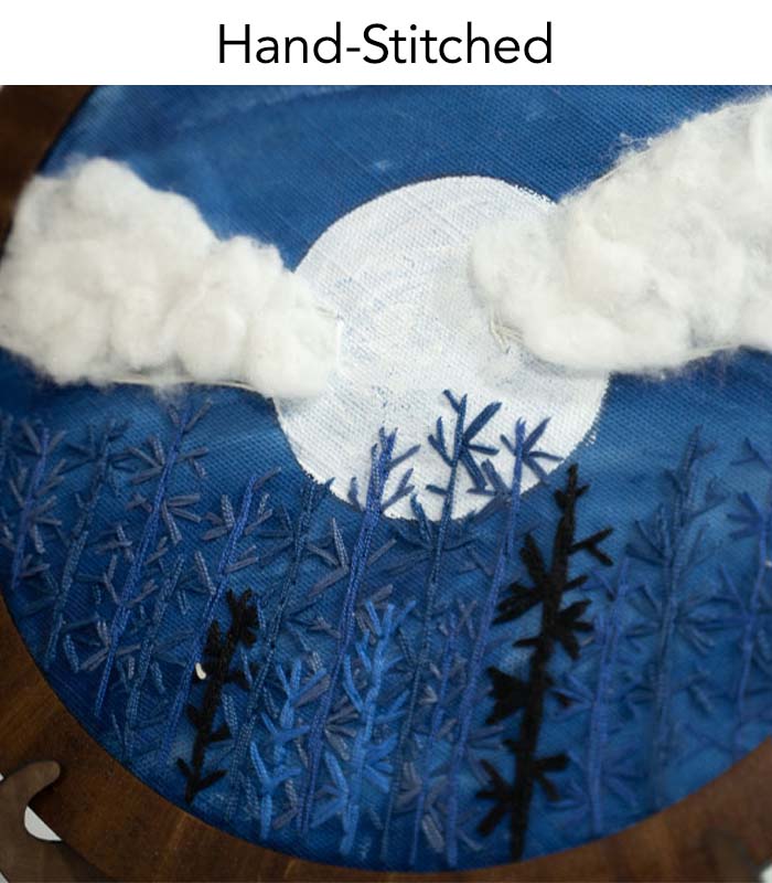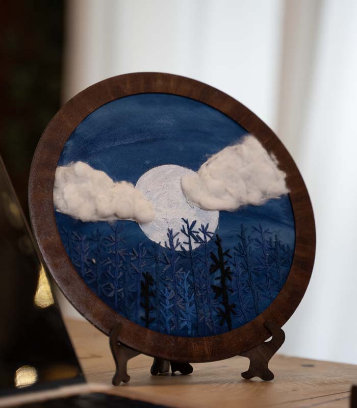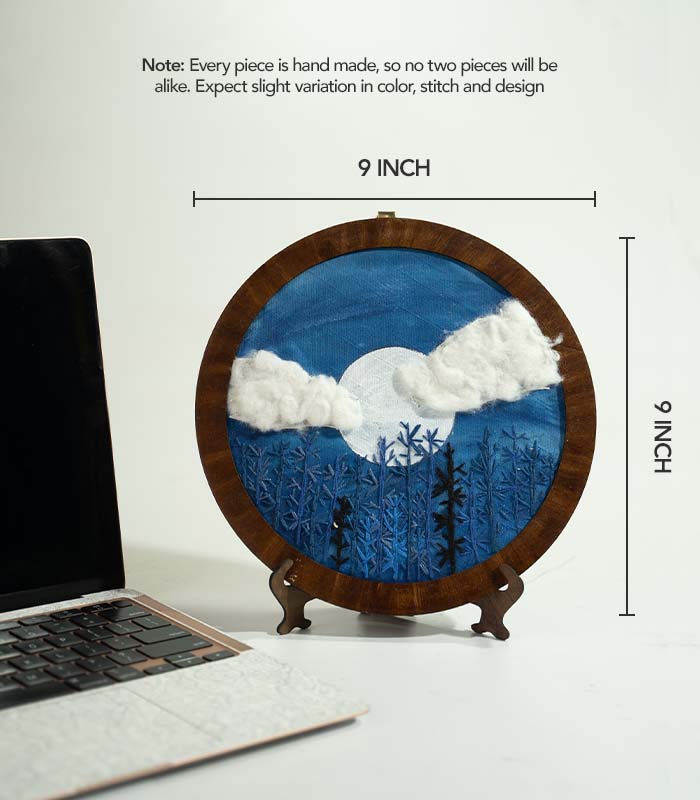 Midnight Moon – Hand Embroidery Hoop Art for Wall Decor & Tabletop Display